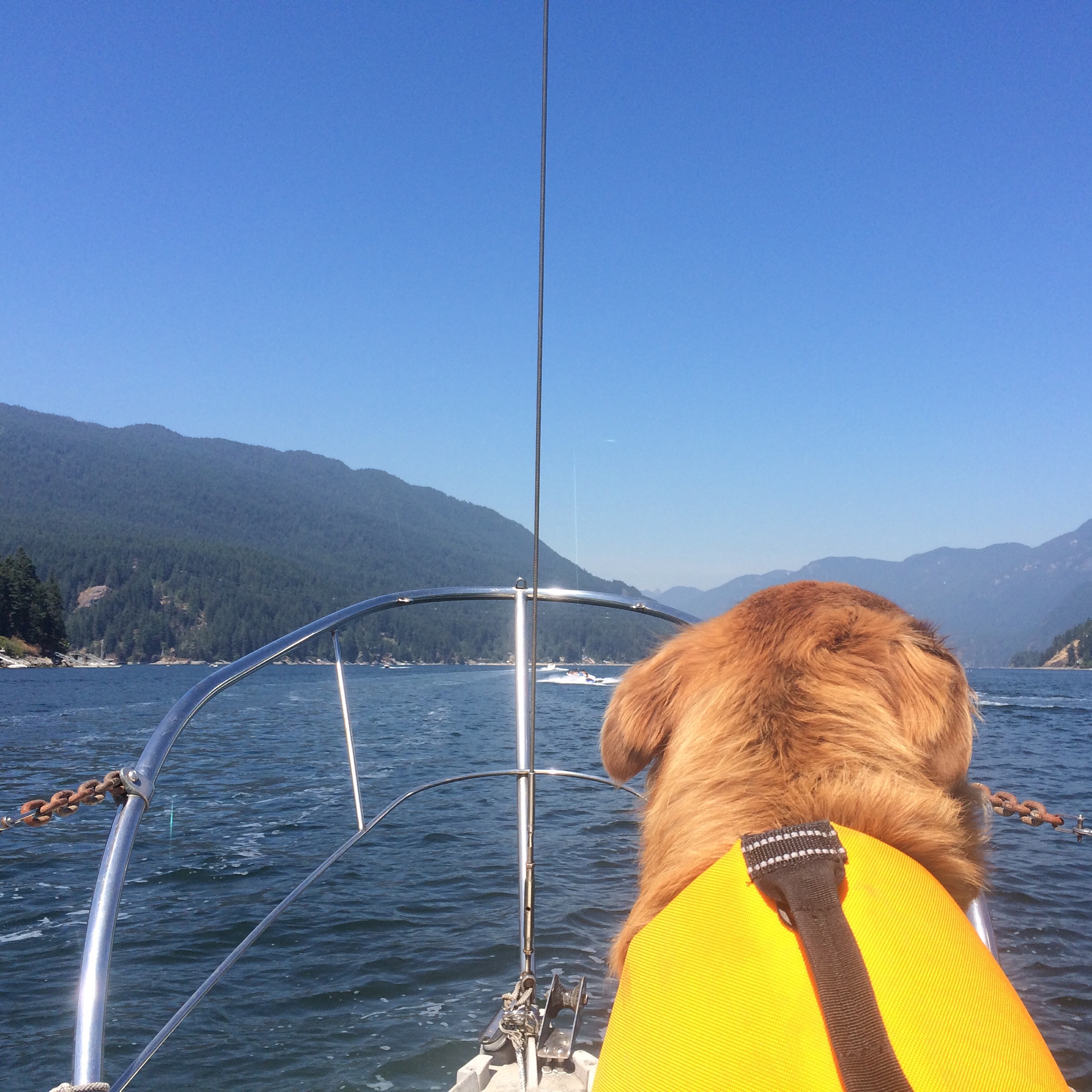 After the initial hesitation, it became next to impossible to keep him in the boat if one of us was in the water. Most of the time this wasn’t an issue and we would have family swimming excursions (which really just consist of Lenny swimming back and forth to keep checking that we are both still okay). Sometimes it would have been easier without him though, like when I was trying to wash my hair and he jumped on me, with no life jacket (i.e. no handle to pull him out). One big scratch down my back and one sorry looking Leonard getting pulled out by the scruff of his neck later and we were all happily back on board and enjoying the scenery.